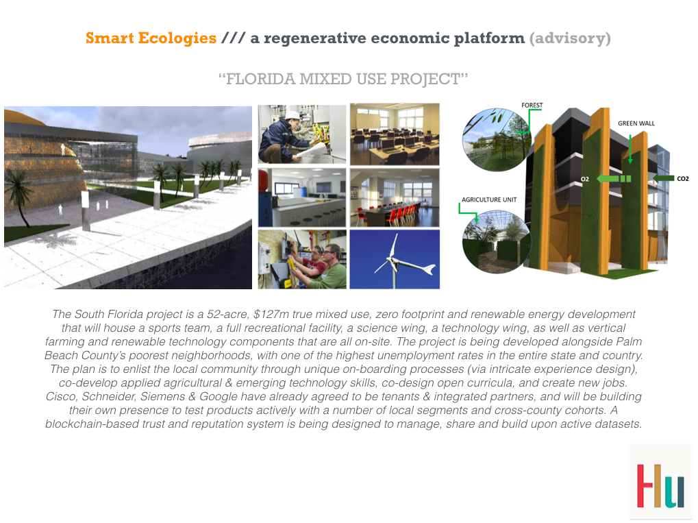 We (as in, our group) developed Smart Ecologies as a means to create living and working systems primarily out of distressed assets. In the example above, the land development is one of many in the U.S. and abroad that has been completely abandoned, yet, it resides next to a railway, a waterway and and urban center.