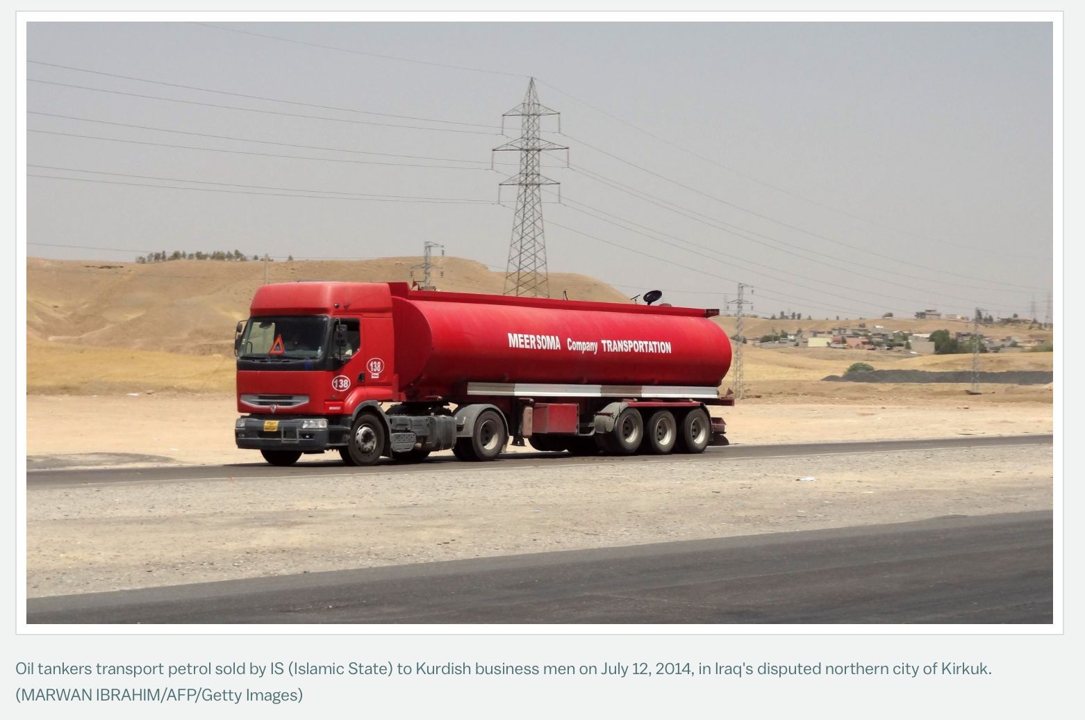 Trucks owned or operated by Meer Soma, a “subsidiary” of the Nokan Group, “are being used to transport refined petroleum products from ISIS-controlled refineries to Kurdish entities in or near Kirkuk,” wrote Ambassador Wallace in the letter dated 20th March 2015.