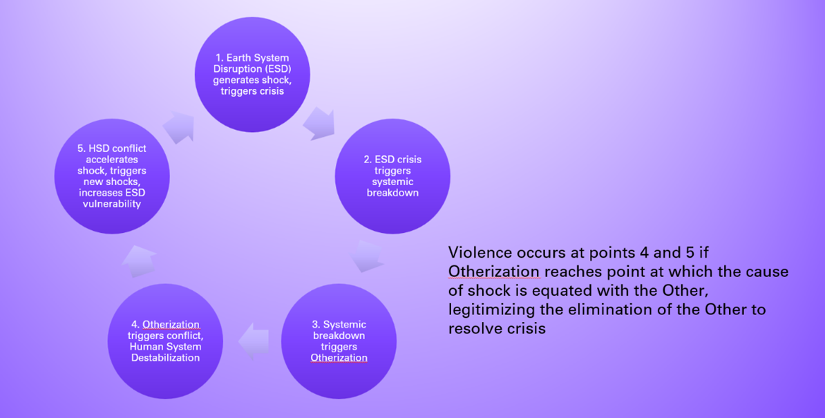 Earth system disruption across climate, environment, energy and food is driving the destabilisation of human social, economic and political systems. In turn, the destabilisation of those systems has inhibited our capacity to recognise and respond to what’s going on in the earth system. The result is that we become even more vulnerable to the next earth system crisis because we never really did anything about its root, systemic causes – because we were myopically obsessed with the surface symptoms: ‘Other’ people, threatening to take ‘our’ stuff.