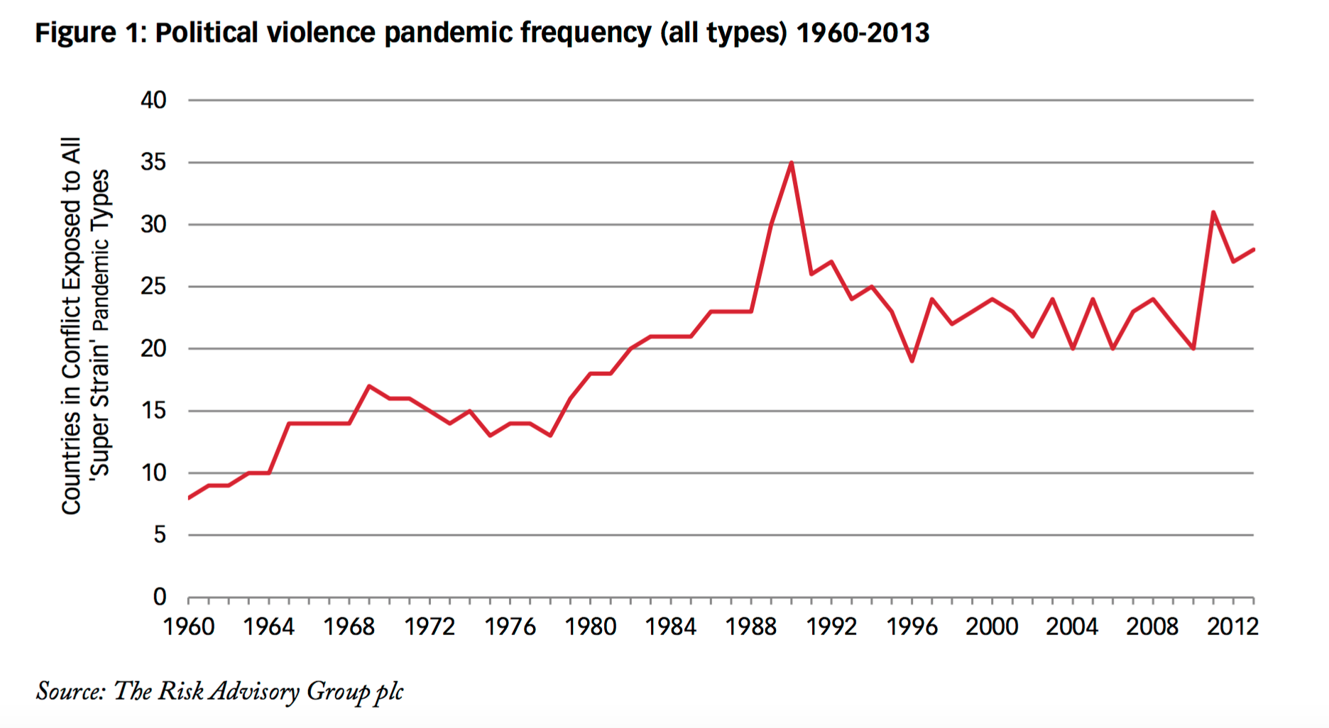 The study was commissioned by Lloyds but carried out by Henry Wilkinson, head of intelligence at the Risk Advisory Group. Examining the frequency and persistence of what he calls “PV pandemics”, Wilkinson shows that they have consistently increased from the 1960s until today.