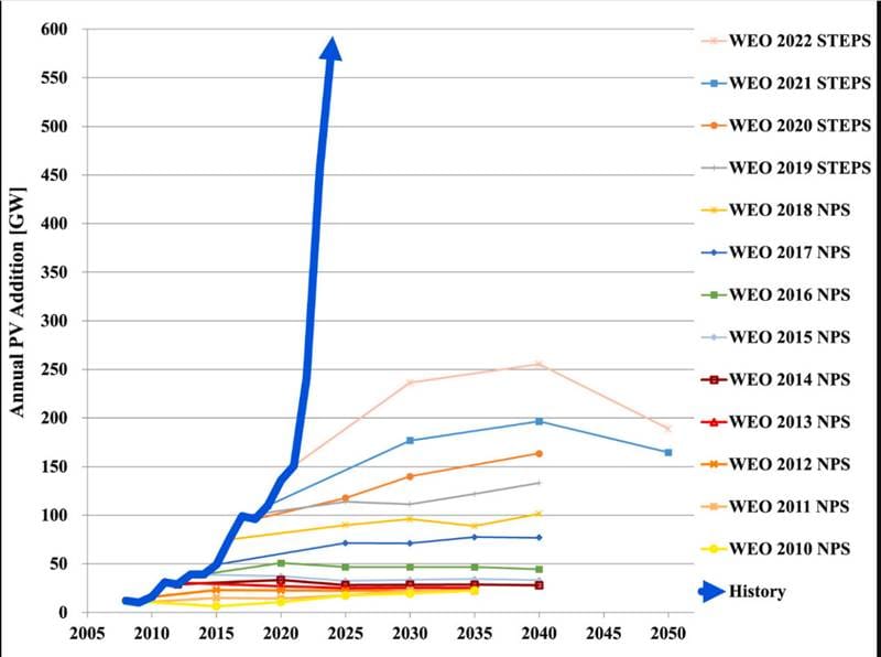 Twenty years ago, naysayers were saying that renewables would never be able to scale and compete with fossil fuels. Just look at the IEA's previous flawed forecasts of renewables every year in that time-frame.