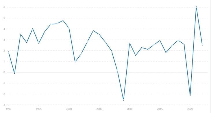Look at the spike in GDP growth after 2020, climbing higher than the previous peak in the late 1990s. Despite that 2020 GDP spike reaching a level far higher than in 2005, US emissions levels are still decreasing and far lower in 2020 compared to 2005.