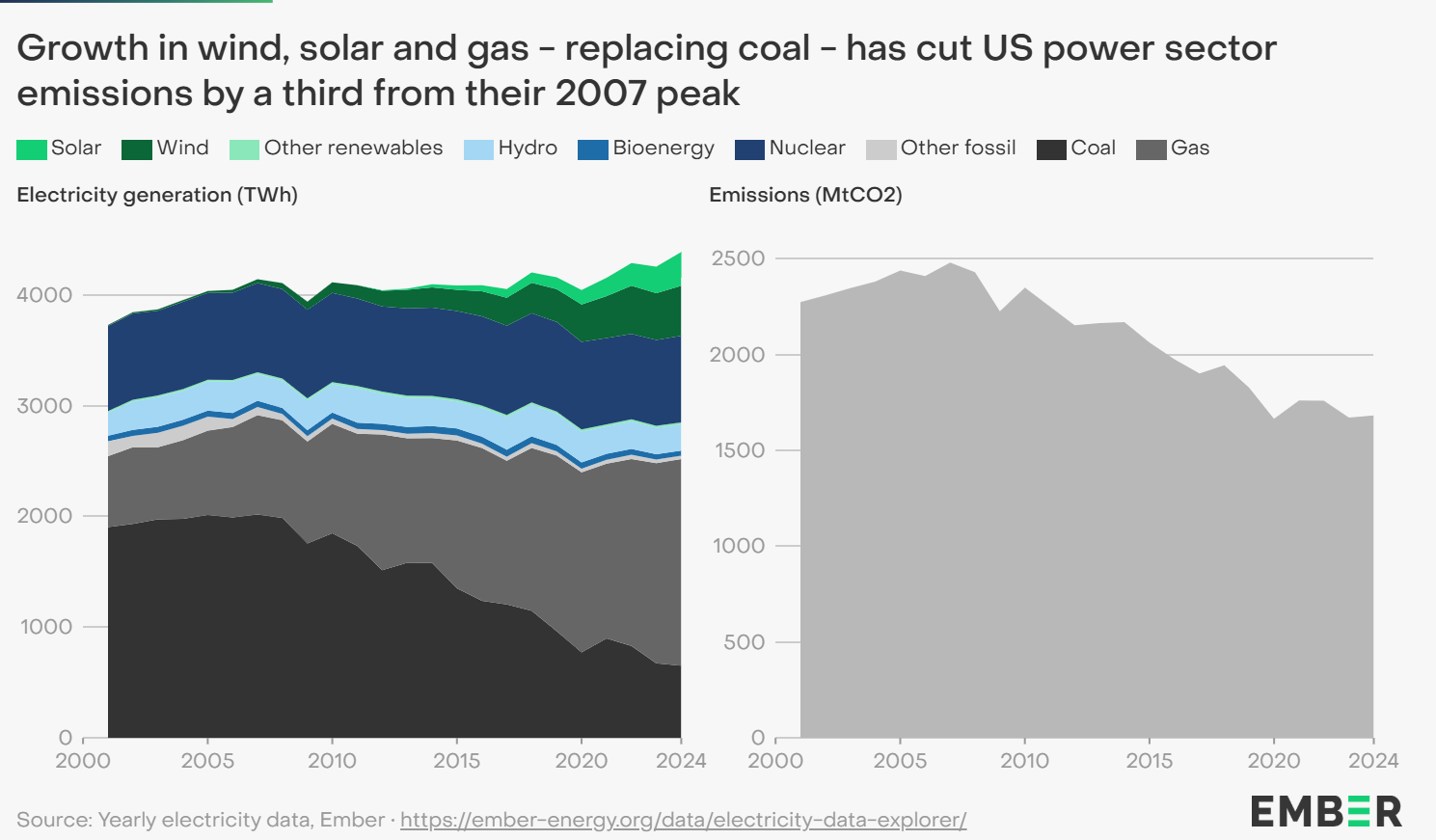 UK-based energy think-tank Ember has explained the transition in detail in its US Electricity 2025 Special Report: