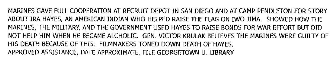 The document goes on to note how the decorated Marine Corps Lt Gen Victor Krulak ‘believes the Marines were guilty of his death because of this [failure to help Hayes].’