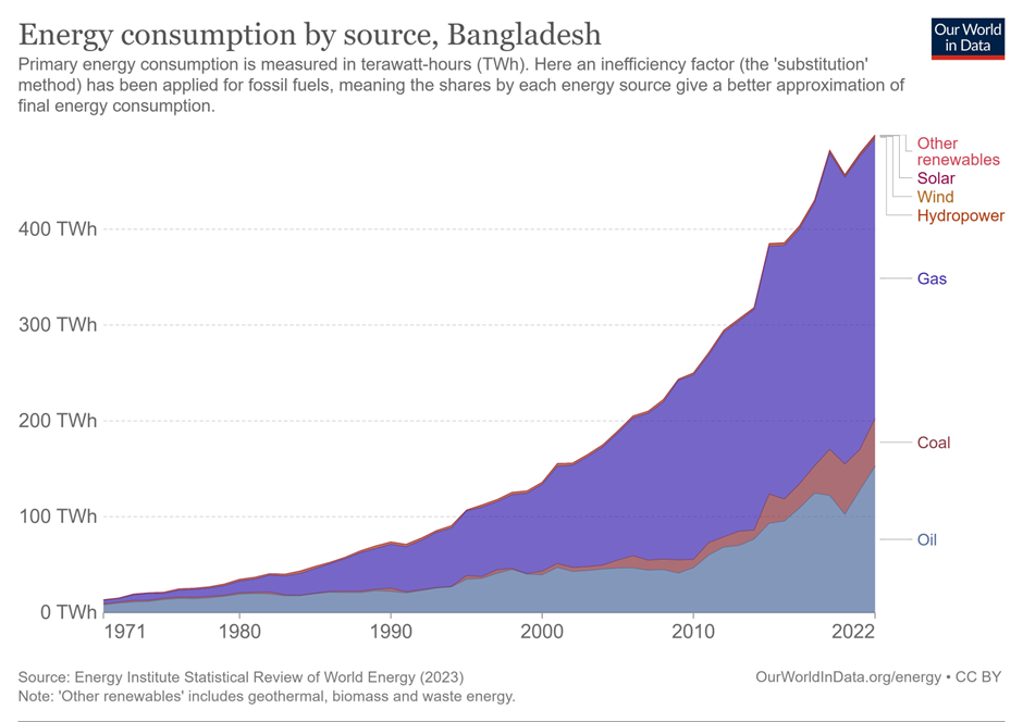 With Bangladesh’s energy growth driven largely by an exponential increase in fossil fuel consumption, the economy is now experiencing the very real limits of this model of development.