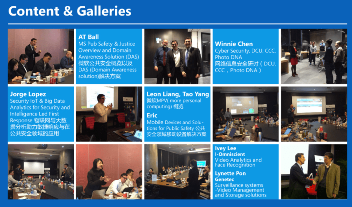 But in 2016, Microsoft’s China subsidiary delivered a seminar for the Ministry of Public Safety at the firm’s China Center One facility in Beijing, showcasing “public safety” solutions. A candid description of the seminar by Arthur Thomas, Microsoft’s managing director for public safety and national security, is available on Microsoft’s website.