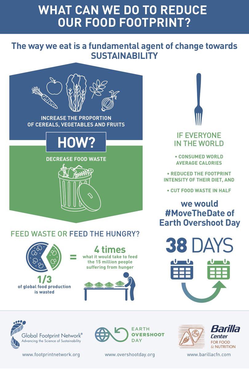 Research by the Global Footprint Network supported by the Barilla Centre for Food and Nutrition shows that by increasing the proportion of cereals, vegetables and fruit in our diets, not eating more than is healthy and avoiding food waste we could roll back Earth Overshoot Day by 38 days (see below).