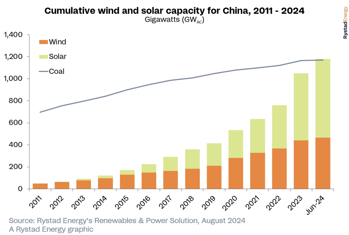 In 2022, intense heatwaves drove a power demand spike; even so, China’s coal power grew only 1.9%, less than one-third the increase seen in the previous year. Why? Because solar output alone in 2024 grew by 43%, far outpacing coal’s growth. Essentially, renewables are eating into the potential growth of coal – if wind and solar hadn’t expanded, coal would have risen much more to meet demand.