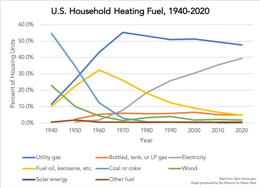 From Coal to Oil and Gas (20th Century): In the early–mid 20th century, the rise of petroleum (oil) and natural gas dramatically displaced the incumbent (coal). In the US, oil and gas went from niche fuels (9% of energy in 1910) to the majority by the 1950s, while coal’s share collapsed from 77% to 28% in that period. In that short time-period this was an absolute decline.