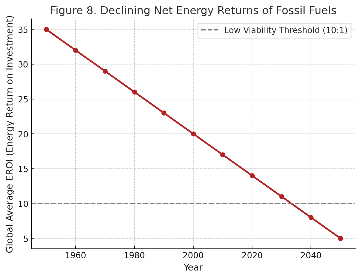 Seen through this lens, the post-2022 intensification of Russia’s hybrid warfare in Europe, or Trump’s assault on U.S. alliances, look less like discrete events and more like systemic symptoms of states trapped in maladaptive responses. Russia’s war is not only a project of imperial ambition. It is also a response to the fragility of a petro-state facing declining net energy returns, climate disruption at home, and the erosion of legitimacy through stagnation. Trump’s retreat from multilateralism is not just a matter of ideology. It reflects the exhaustion of U.S. hegemony in an age when its own domestic economy has been hollowed out by energy decline and inequality.