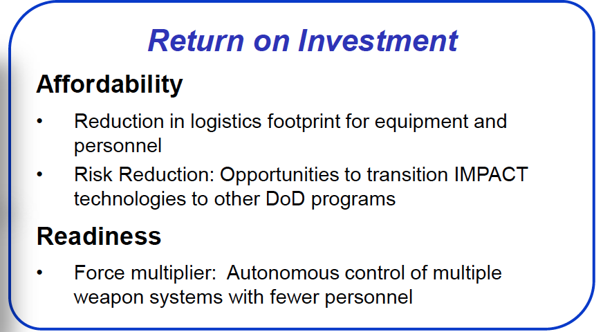 This will be the foundation for two types of weapon systems: “Human/ Autonomous System Interaction and Collaboration (HASIC)” and “Scalable Teaming of Autonomous Systems (STAS).”