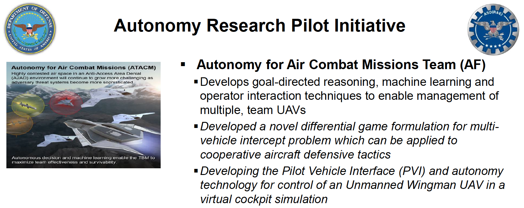 Another type is described under the header, ‘Autonomy for Air Combat Missions Team (AF).’