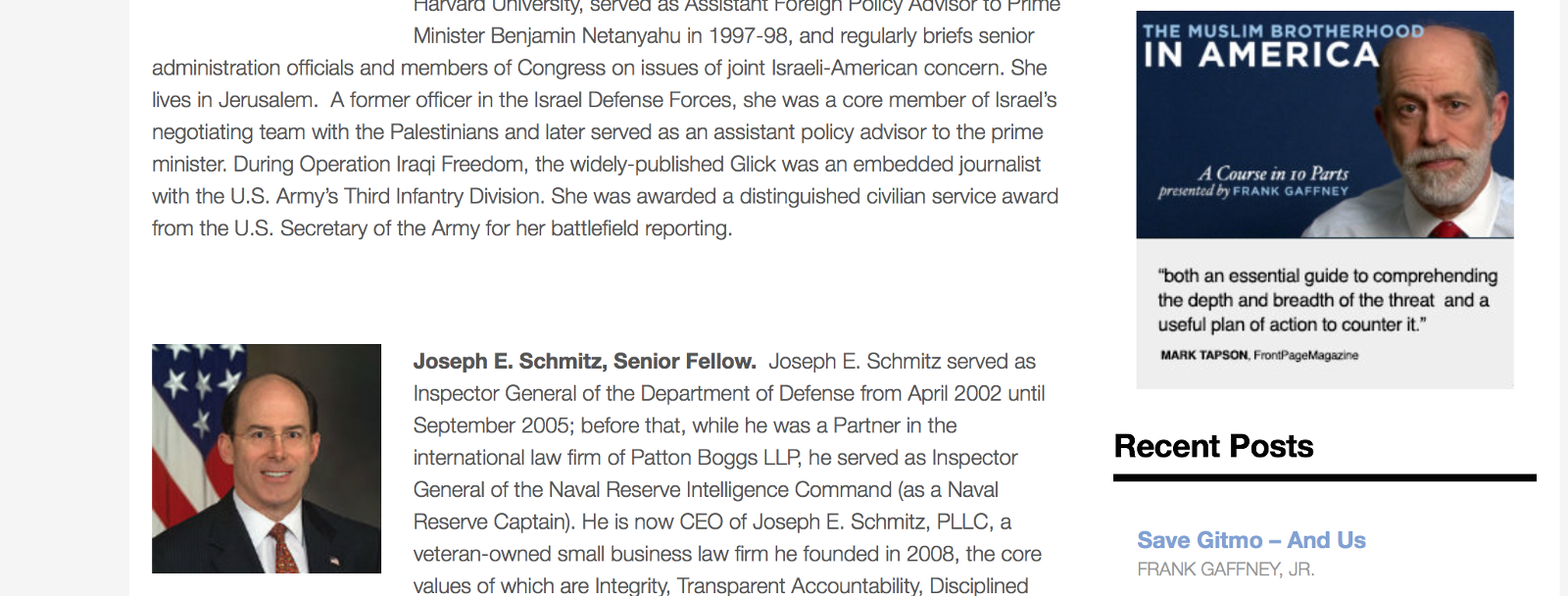 Later, Schmitz acquired the distinction of co-authoring with former CIA director James Woolsey a ‘report’ for Gaffney’s CSP, Sharia: The Threat to America(coincidentally compiled by current Ted Cruz adviser Claire Lopez).
