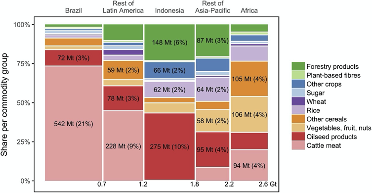 It concluded that the biggest global driver of carbon emissions induced by deforestation is beef production in Brazil, the rest of Latin America, and Africa, accounting for some 34 percent of emissions. The next major driver is from oilseeds products such as vegetable oils, at around 20 percent.