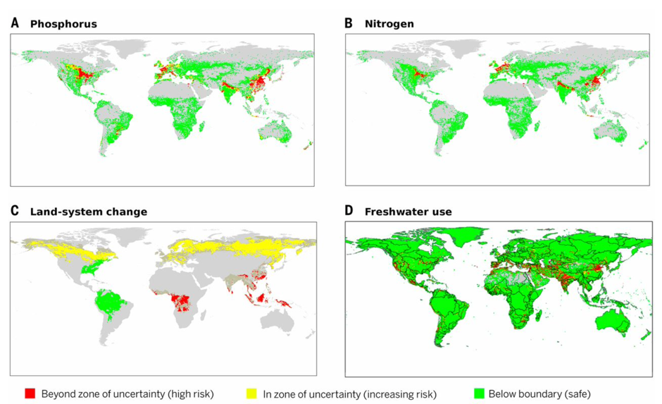 Other boundaries we were on the brink of breaching at that time included the rate at which species were going extinct, levels of atmospheric carbon dioxide, and the flow of nitrogen and phosphorus into the environment due to industrial agriculture. The further we breach these and other planetary boundaries, the greater the risk of irreversibly driving the Earth into a less hospitable state for humanity.