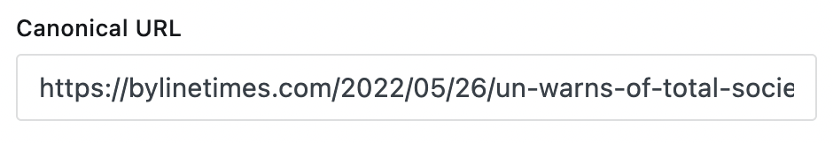 It appears that you've only re-published one piece before (Ugo Bardi's How the Roman Empire can explain the dramatic rise in state violence), but on the off chance that you do so again it's advised that while adding in the #re-post internal tag that you utilise the Canonical URL functionality so that INSURGE as well as the site hosting the original article don't get penalised SEO-wise (for duplication). To do so, follow the same process as when adding in the URL for an #external post. In the Post settings side-panel click on Meta data –