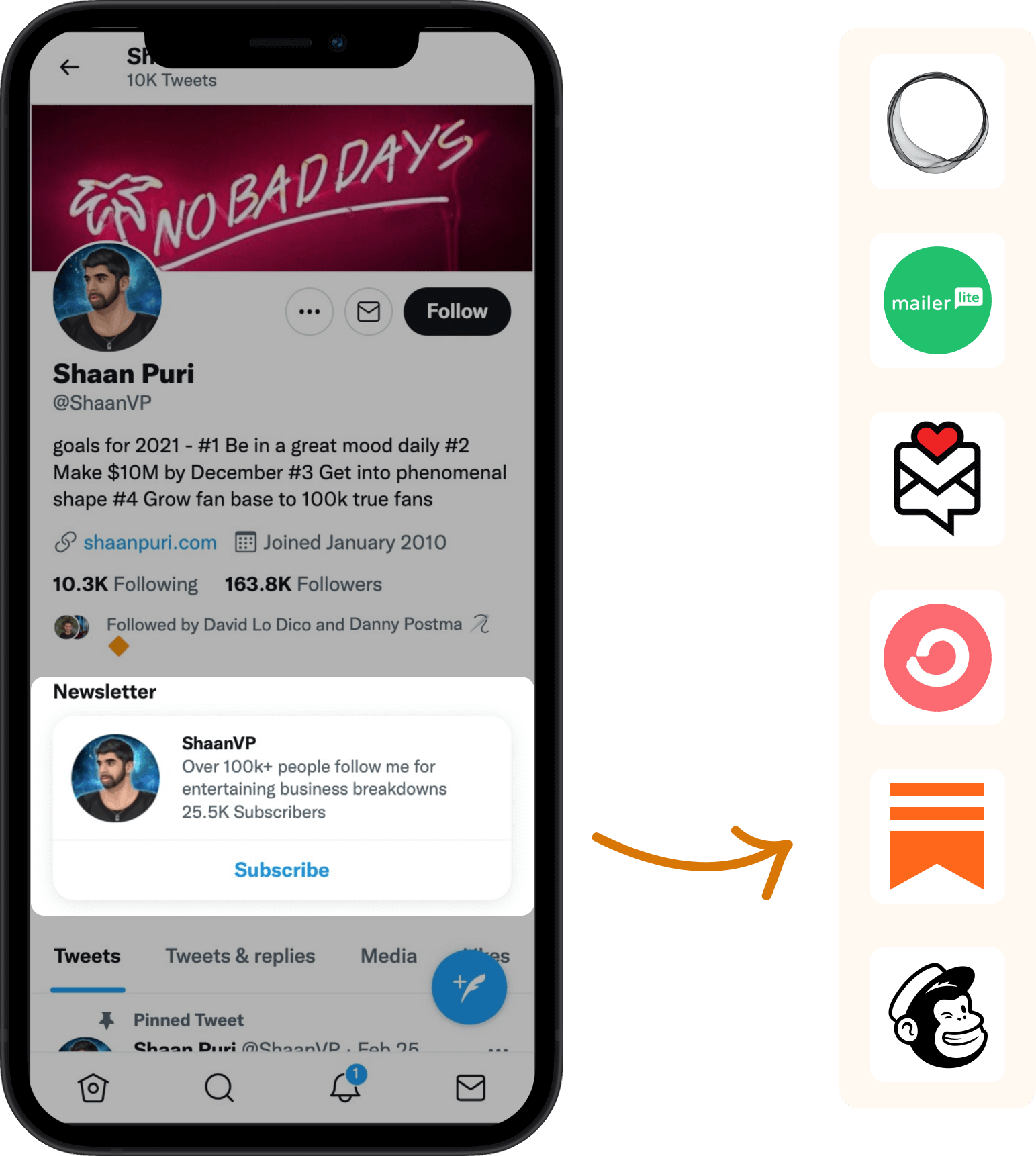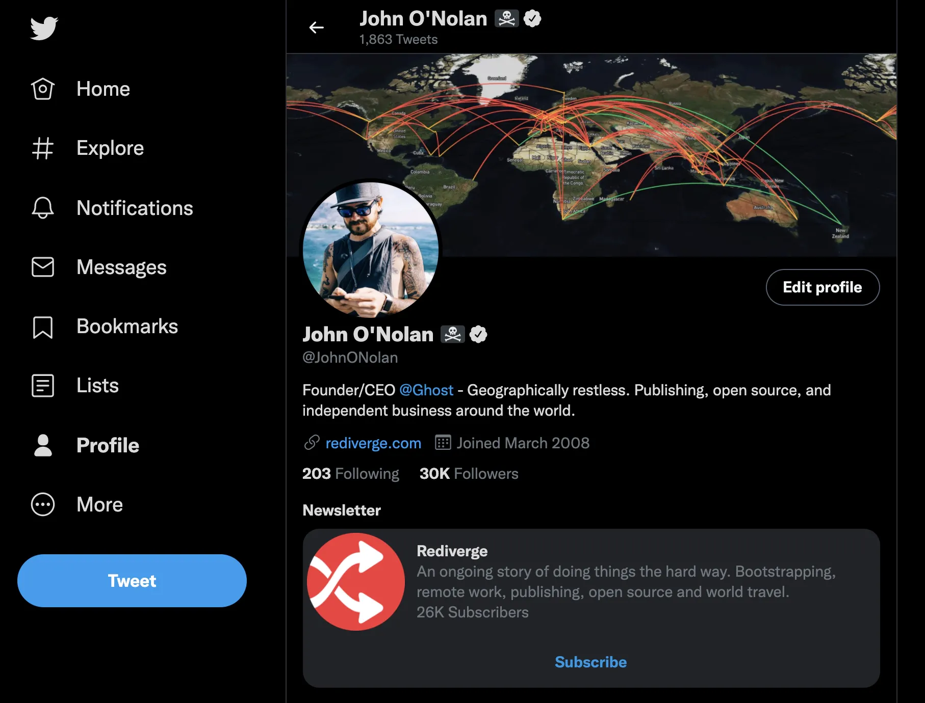 You may have noticed before that some Twitter users display at the bottom of their account page the ability to subscribe to their newsletter. For example, John O'Nolan, Ghost's co-founder.
