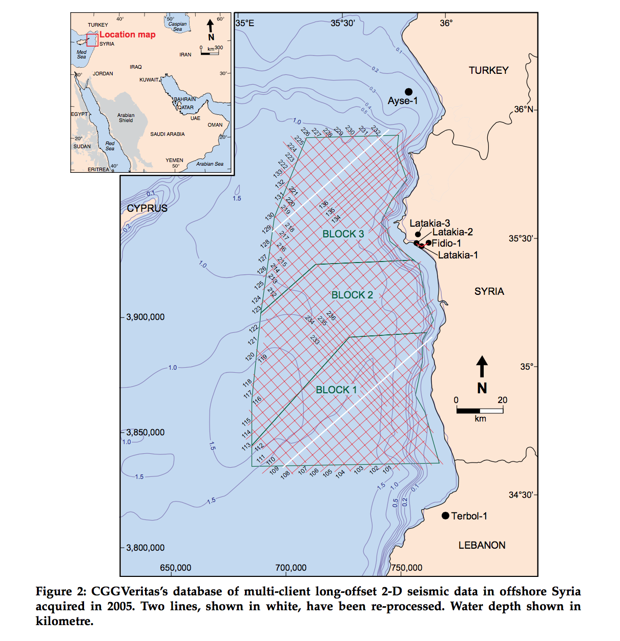 Authored by Steven A. Bowman, a Senior Geoscientist for the French energy company CGGVeritas, the study identified “three sedimentary basins, Levantine, Cyprus, and Latakia, located in offshore Syria” and highlighted “significant evidence for a working petroleum system in offshore Syria with numerous onshore oil and gas shows, DHIs (direct hydrocarbon indicators) observed on seismic, and oil seeps identified from satellite imagery.”