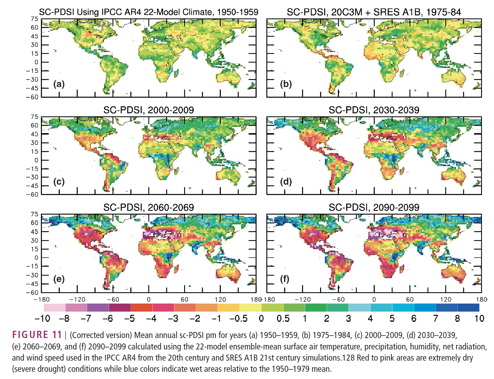 The NCAR model was corroborated by a Potsdam Institute study published in the Proceedings of the US National Academy of Sciences in 2013, which found that “the combination of unmitigated climate change and further population growth will expose a significant fraction of the world population” to “chronic or absolute water scarcity.”